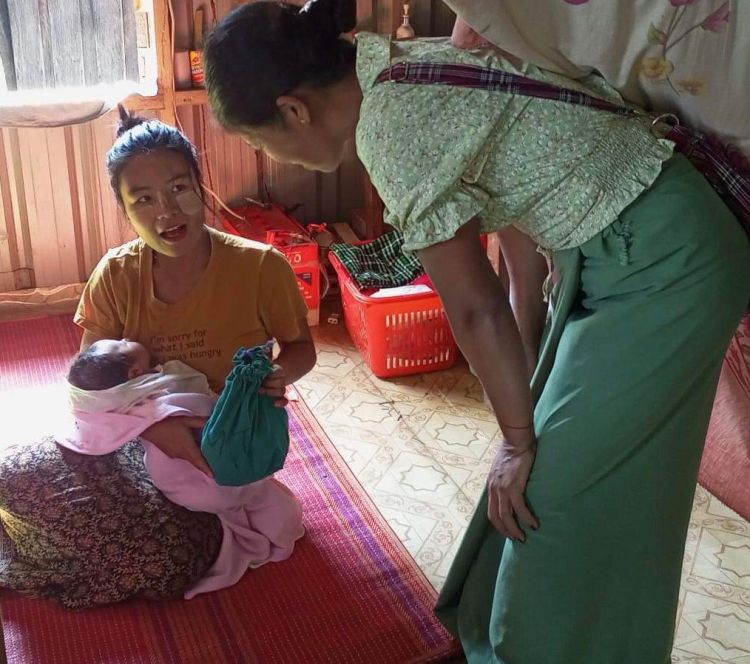 These kits are distributed to the Traditional Birth Attendants (TBAs) and to pregnant women themselves in remote villages including to IDPs in refugees camps who are affected by the military coup. The coup has affected everyone but most importantly those who are forced to flee from their homes as the military burned down whole towns and villages.
